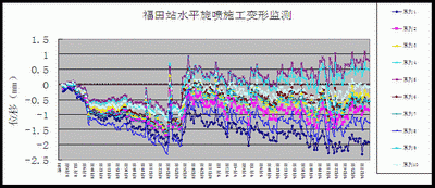 為控制隧道開挖引起的土體變形,確保地鐵1號線運行安全,拱部設計采用三排Φ600mm高壓水平旋噴樁形成加固拱。雖兩邊有加固工作面,但一次性進行四十多米共82.3的水平旋噴在國際上都沒有先例。正式施工前在掌子面做了幾個水平旋噴實驗樁,水平取芯接近40米,效果良好。工程施工中采用了多種先進施工技術如:全方位無線導向技術、三管同軸型強制排泥技術、障礙物穿越處理技術、水泥自動計量攪拌技術等,有效保證了工程質量和施工工期。施工中地鐵一號線沉降基本控制在±1.5mm范圍。